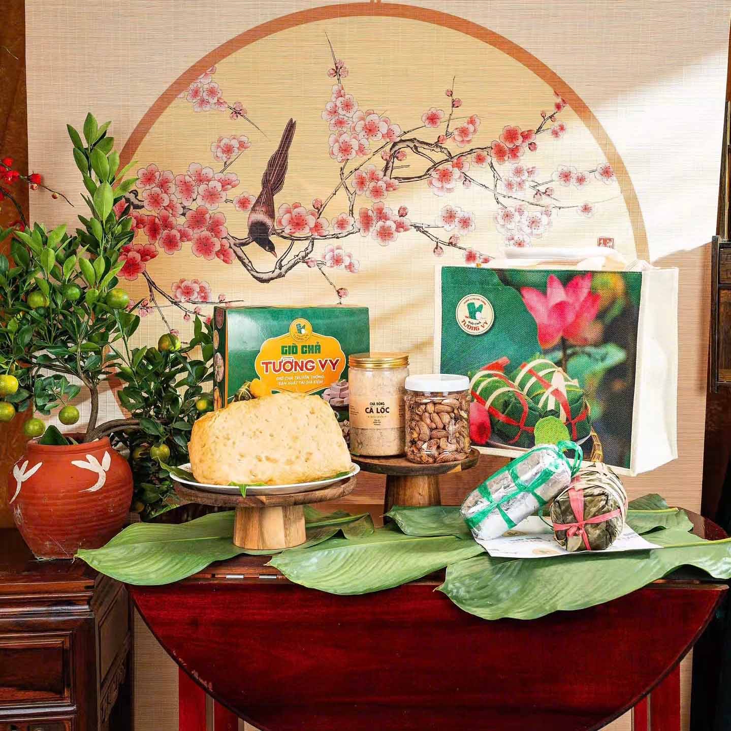 Giỏ quà Tết gồm các món giò chả quen thuộc, phù hợp biếu tặng gia đình, người thân dịp đầu năm.