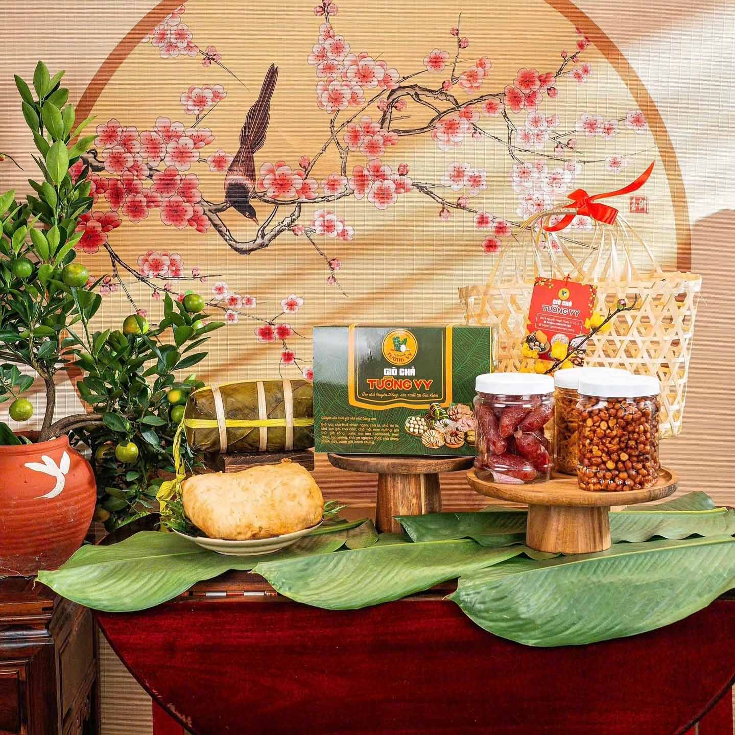 Giỏ quà Tết gồm các món giò chả quen thuộc, phù hợp biếu tặng gia đình, người thân dịp đầu năm.